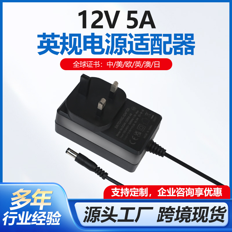 クロスボーダー12v5a電源アダプタ英規UKCA認証電源器セキュリティ監視壁式充電器
