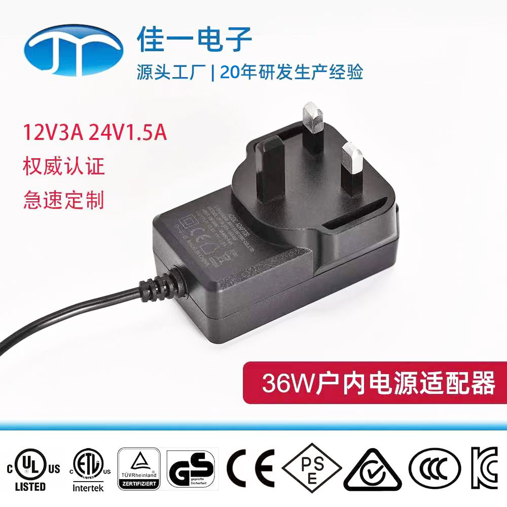 36w英規ce認証電源アダプタ12v3a 24v1.5a米欧澳日韓中規標準電源
