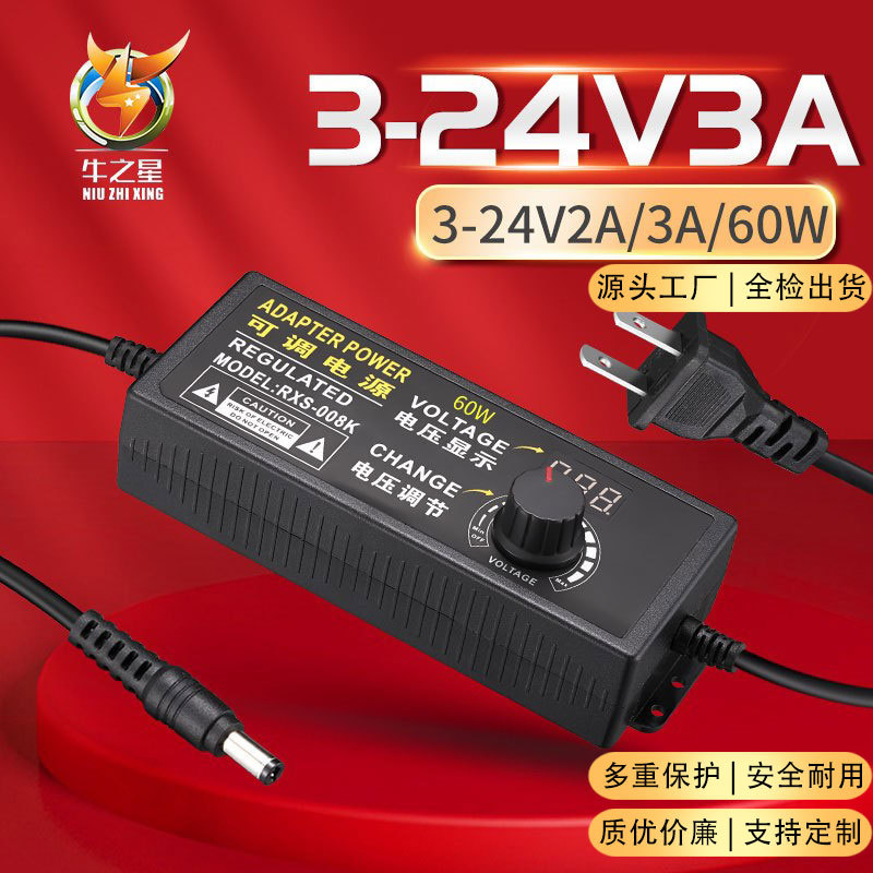 3-12V2A電源アダプタ9-24V1A調整可能電圧スイッチ調速調光調温二重線直流安定化