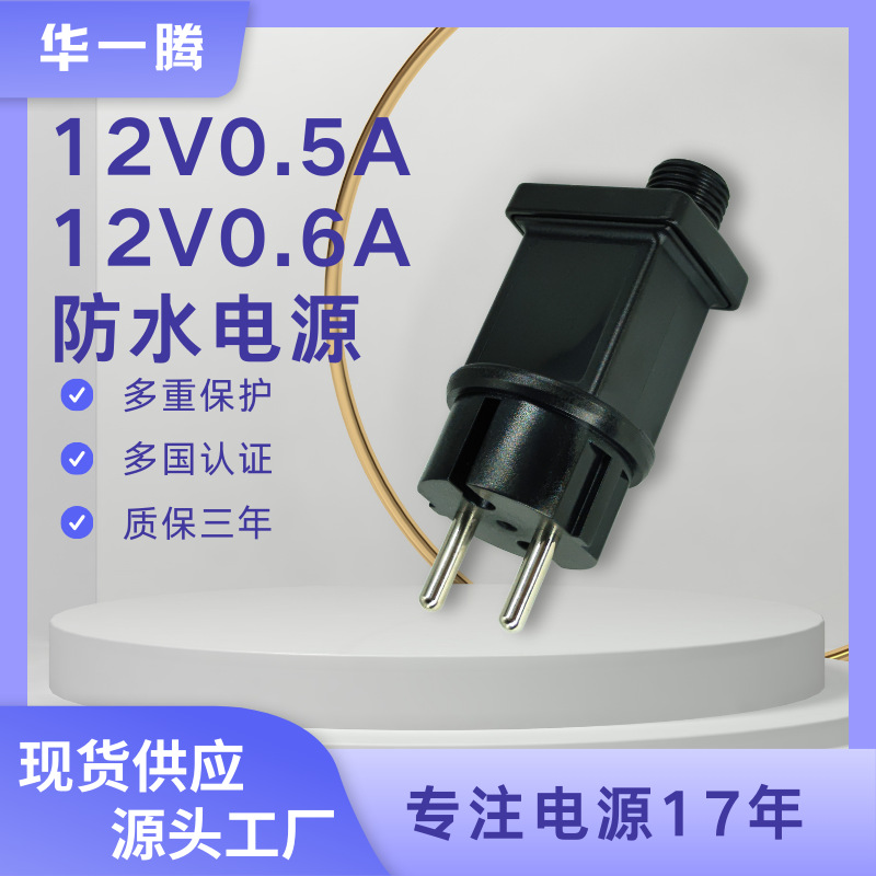 12V0.5A0.6A 防水電源 IP44 米国およびヨーロッパ LED 電源クリスマス照明ストリングライトストリップ電源