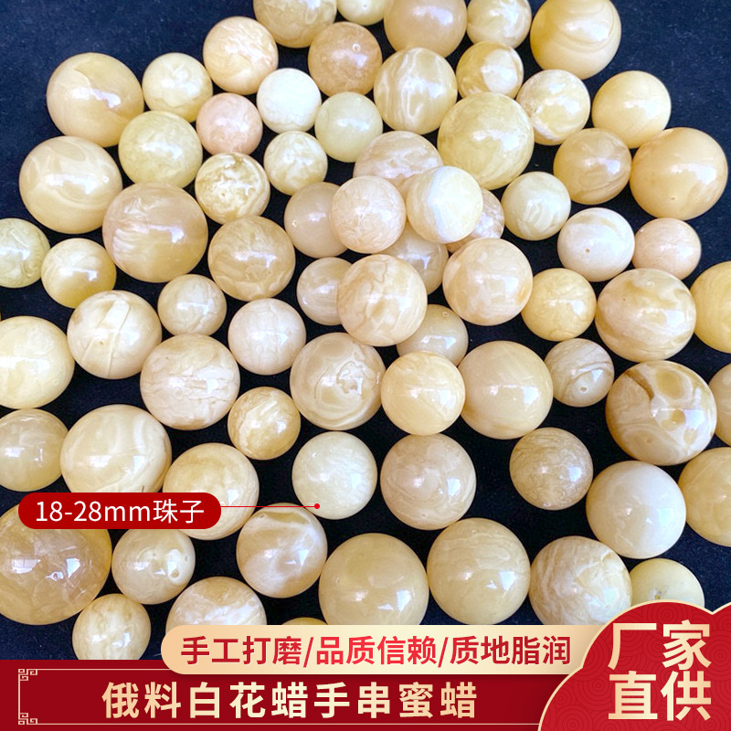 木目がはっきりしている自然ミツロウロシア材料白花ワックスビーズビーズ手串18 ~ 28mm直径ビーズ