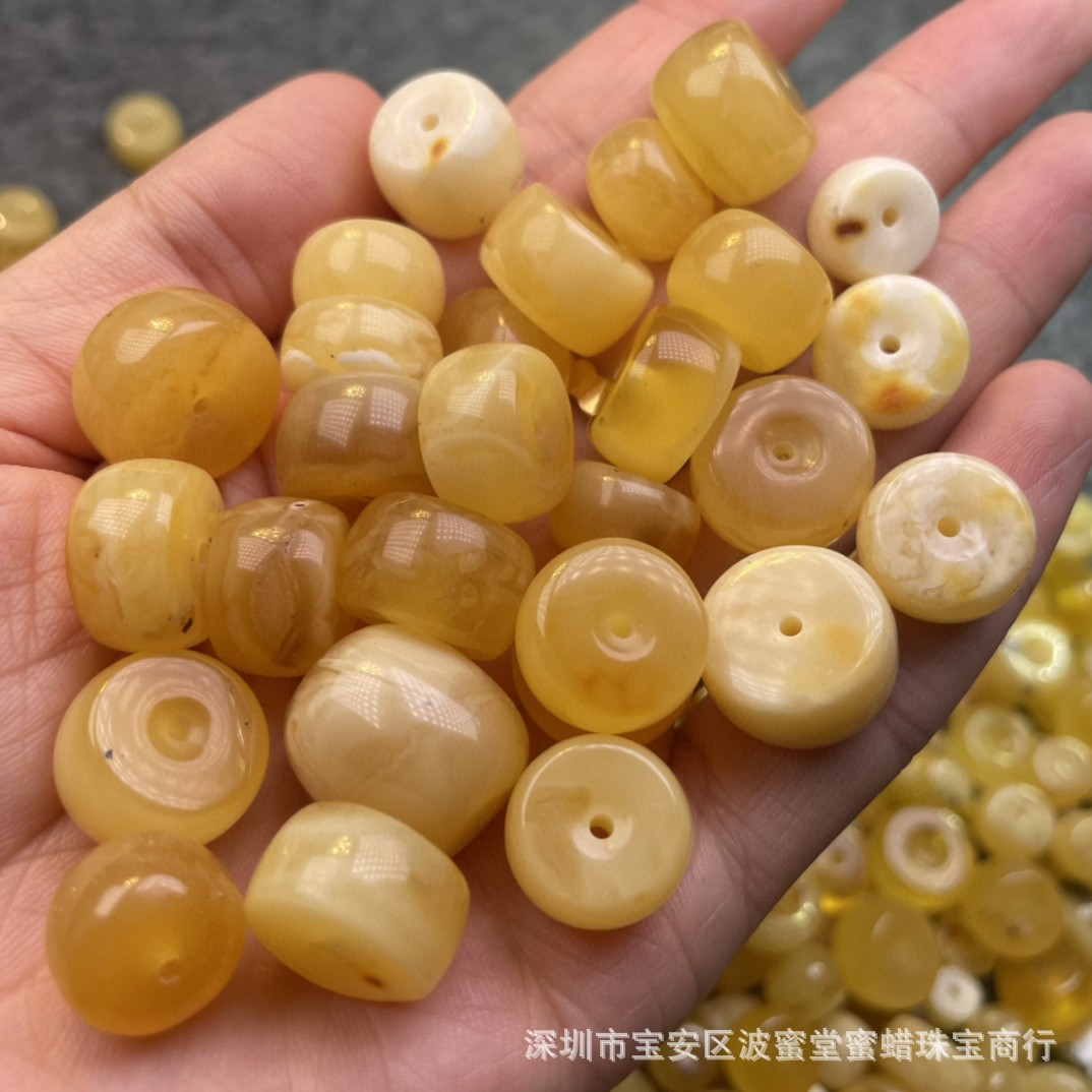 メーカー直営原鉱ロシア材料のミツロウ還流老ミツロウ玉手串琥珀玉手串