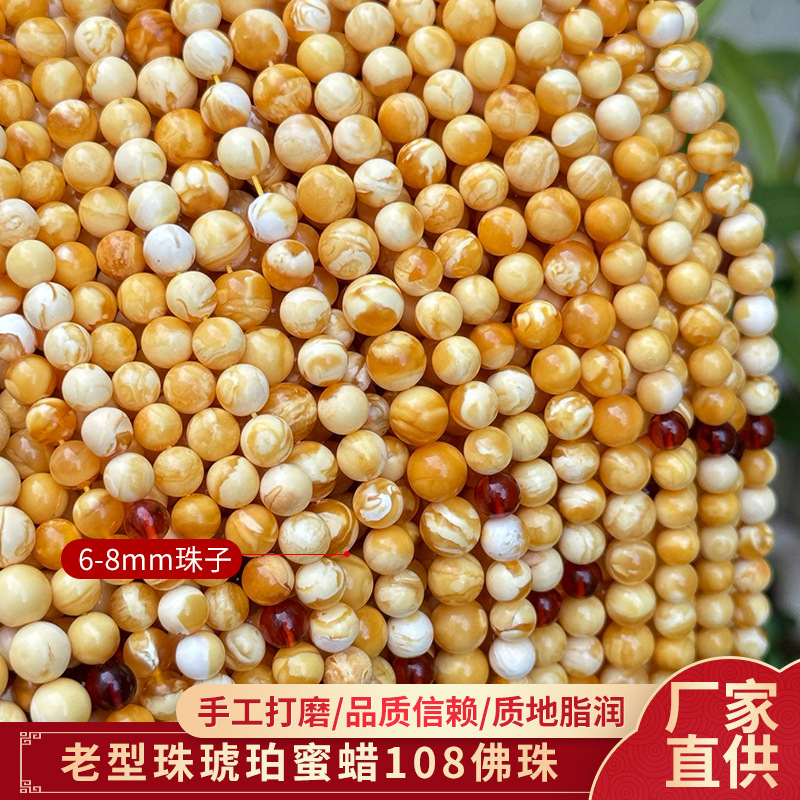 スポット卸売り108仏珠蜜ろう質濃厚な質感がはっきりしている琥珀の古い仏珠は6 ~ 8mmの大きさである