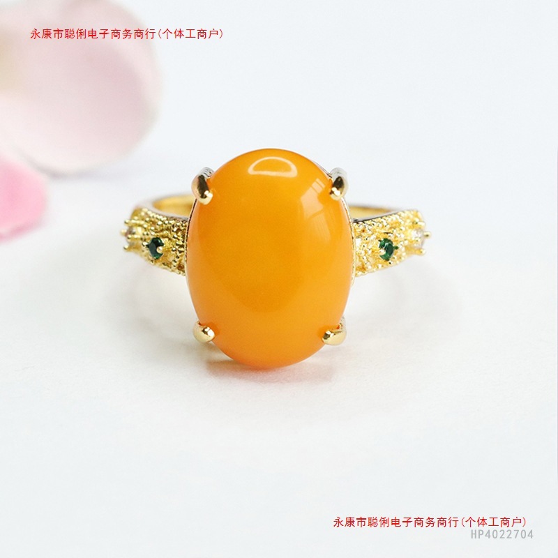 天然ロシア産古い蜜蝋リング S925 スターリングシルバーファッションレトロシンプルな雰囲気のファッショナブルな卵面リング