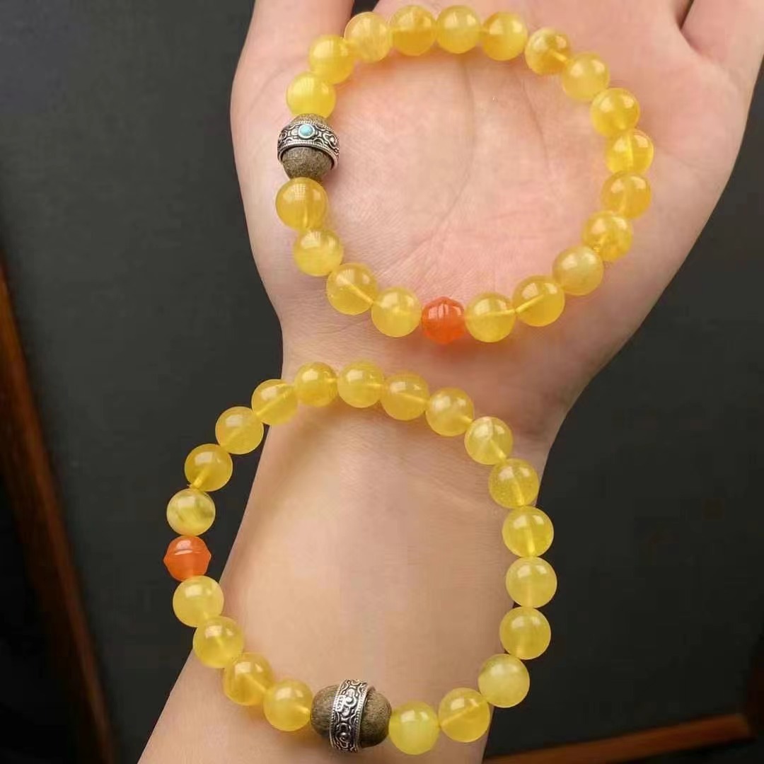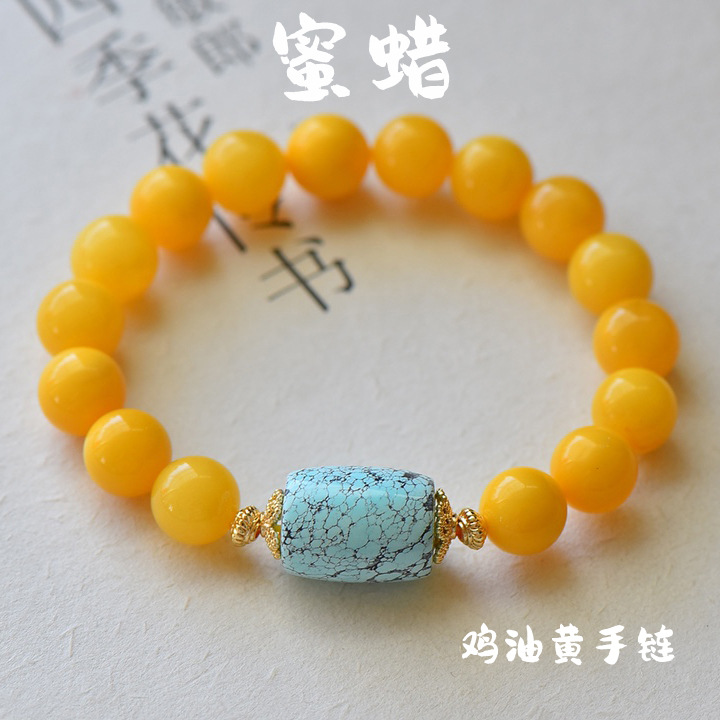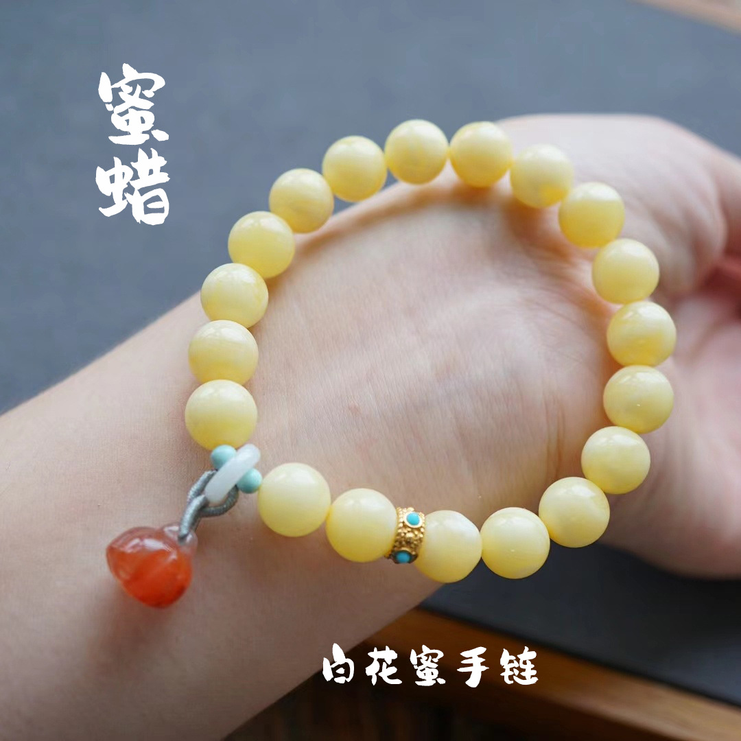 メーカー卸売り天然ミツロウロシア材料鶏油黄8mm手串ブレスレットDIYアクセサリー生放送供給
