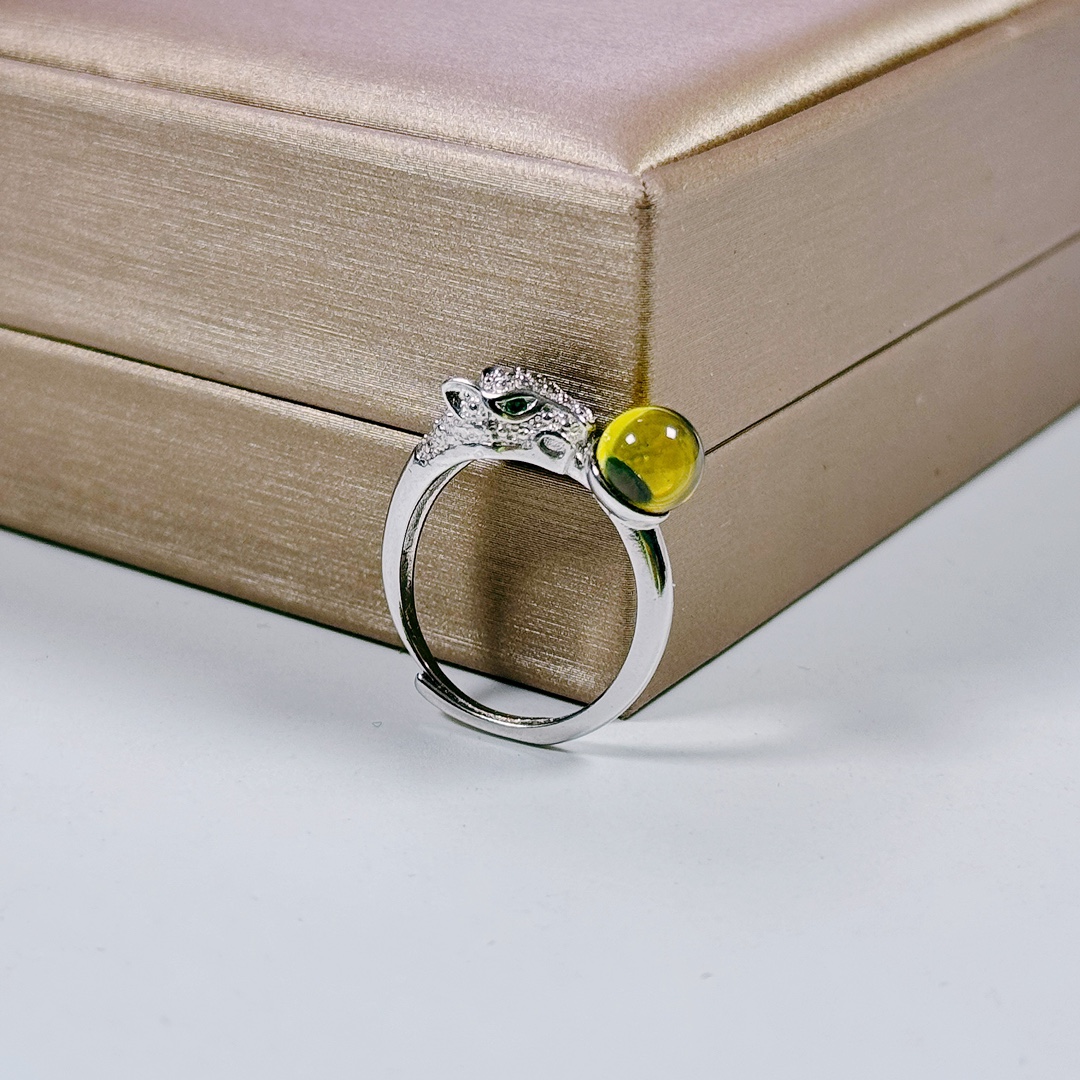 暴富6mm天然ブルーパー高品質銅アクセサリー指輪豹を題材としたデザインが生き生きとしている