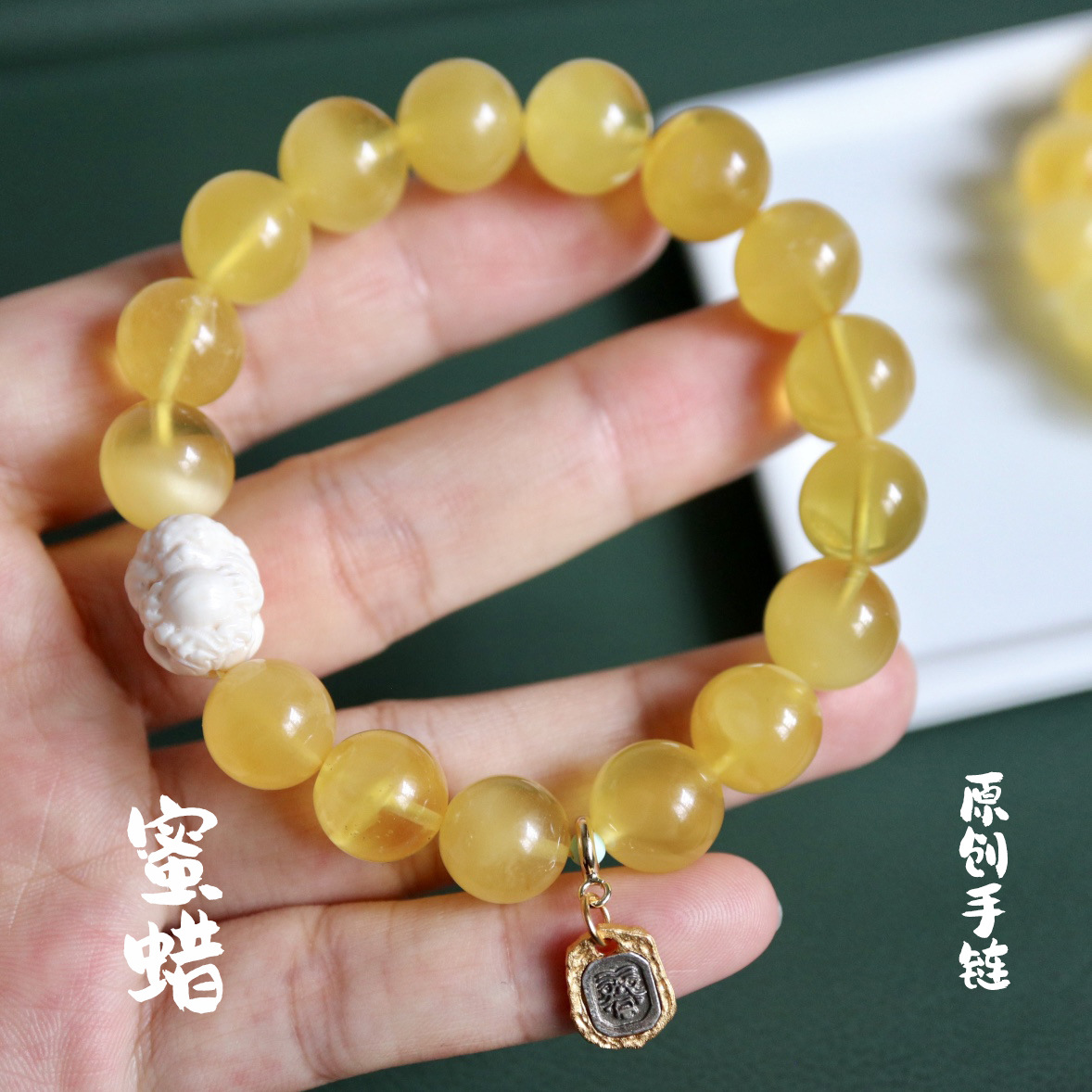 天然鶏油黄色蜜蝋ブレスレット、本物保証、高級品、黄色蜜本物、デザイン品、鑑定書発行可能、高級供給源