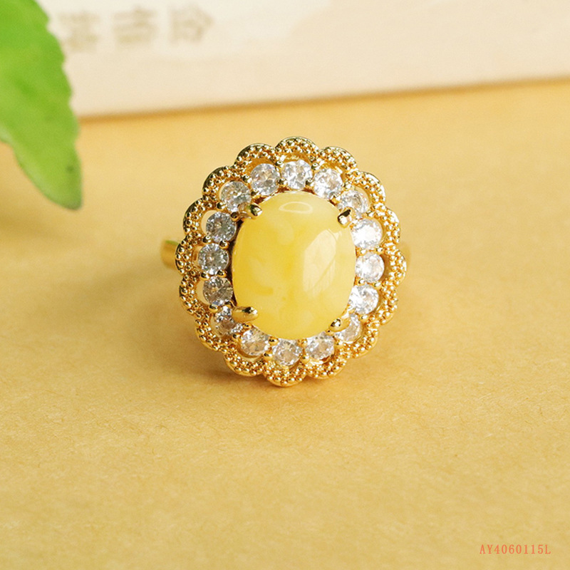 愛钰天然琥珀指輪蜜蝋指環宮廷風女宝飾品メーカー卸売り代理代理AY4060115L