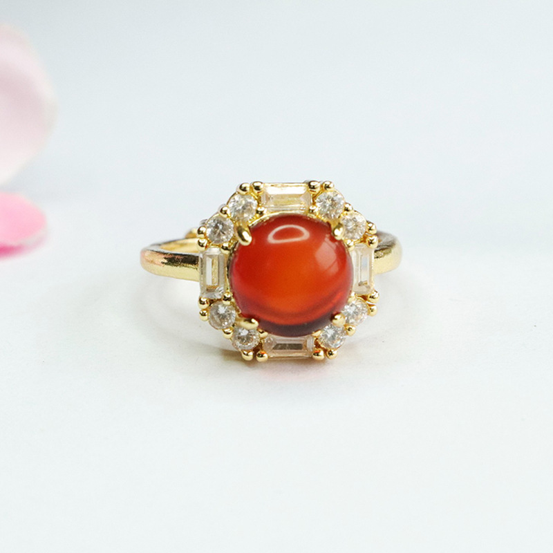 鑫钰天然琥珀指輪血パー指輪復古風女金工場卸売り代代理hp 4031202