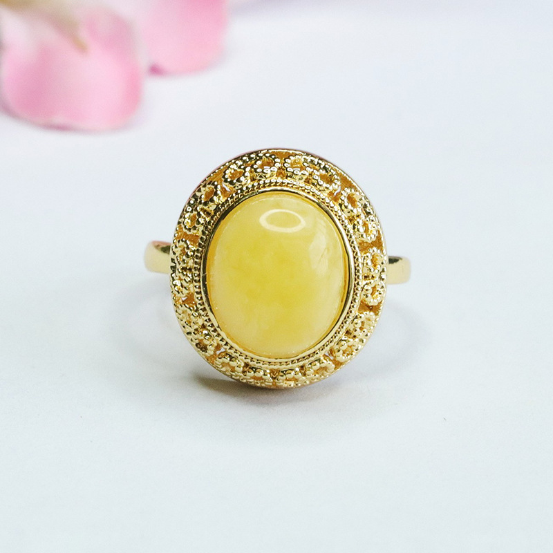 钰天然ミツロウ指輪黄蜜琥珀指リング女性レトロ工場卸売り代発hp 3081506