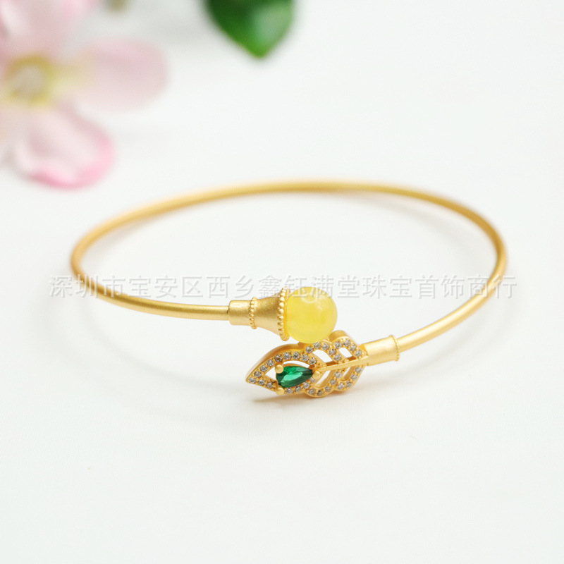 鑫钰天然14k包金蜜ろう手環玉ブレスレット玉玉器葉宝飾品プレゼント