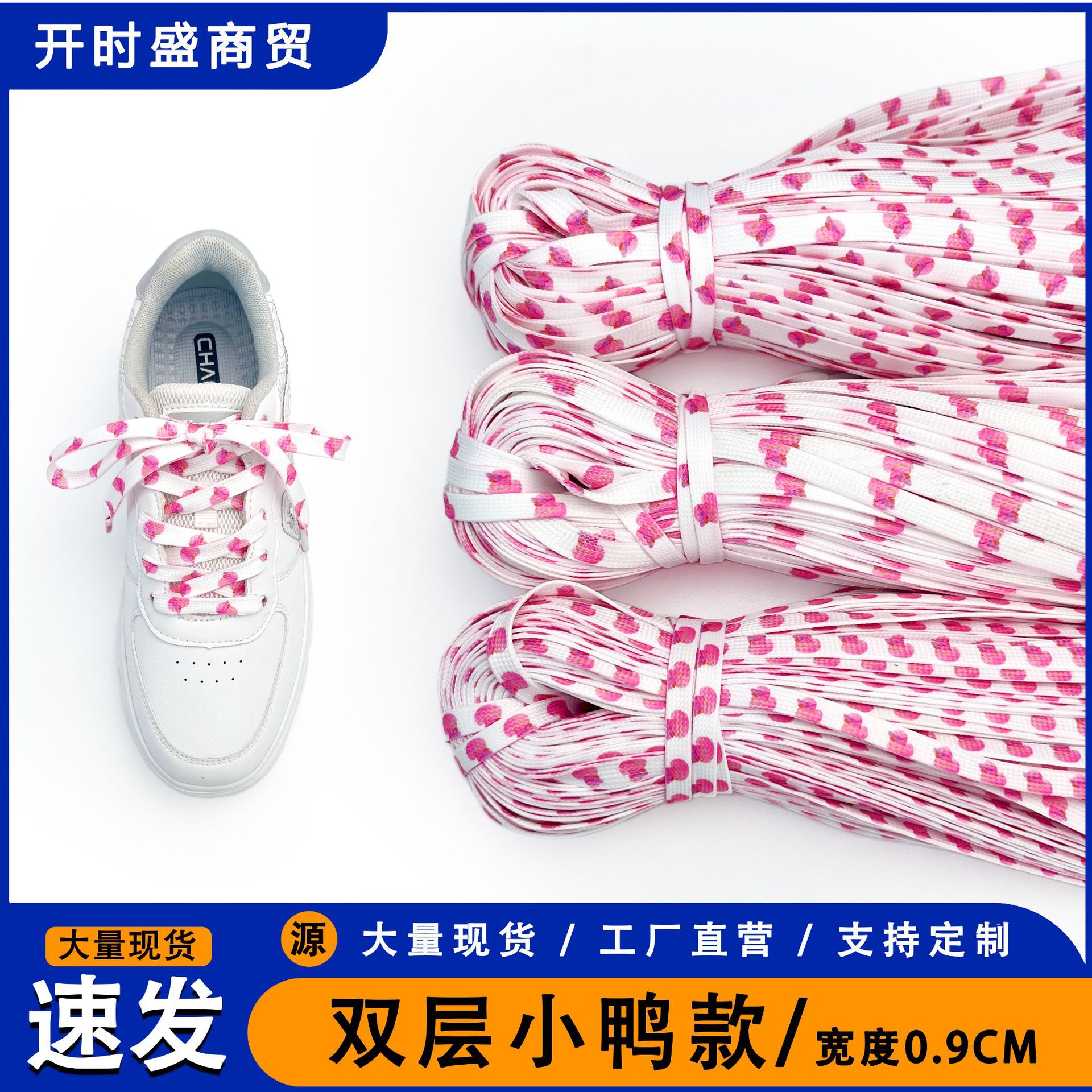 プリント柄の二重構造ダック柄ポリエステル平紐シューレース、男女兼用、スニーカー、キャンバスシューズ、スポーツシューズ用