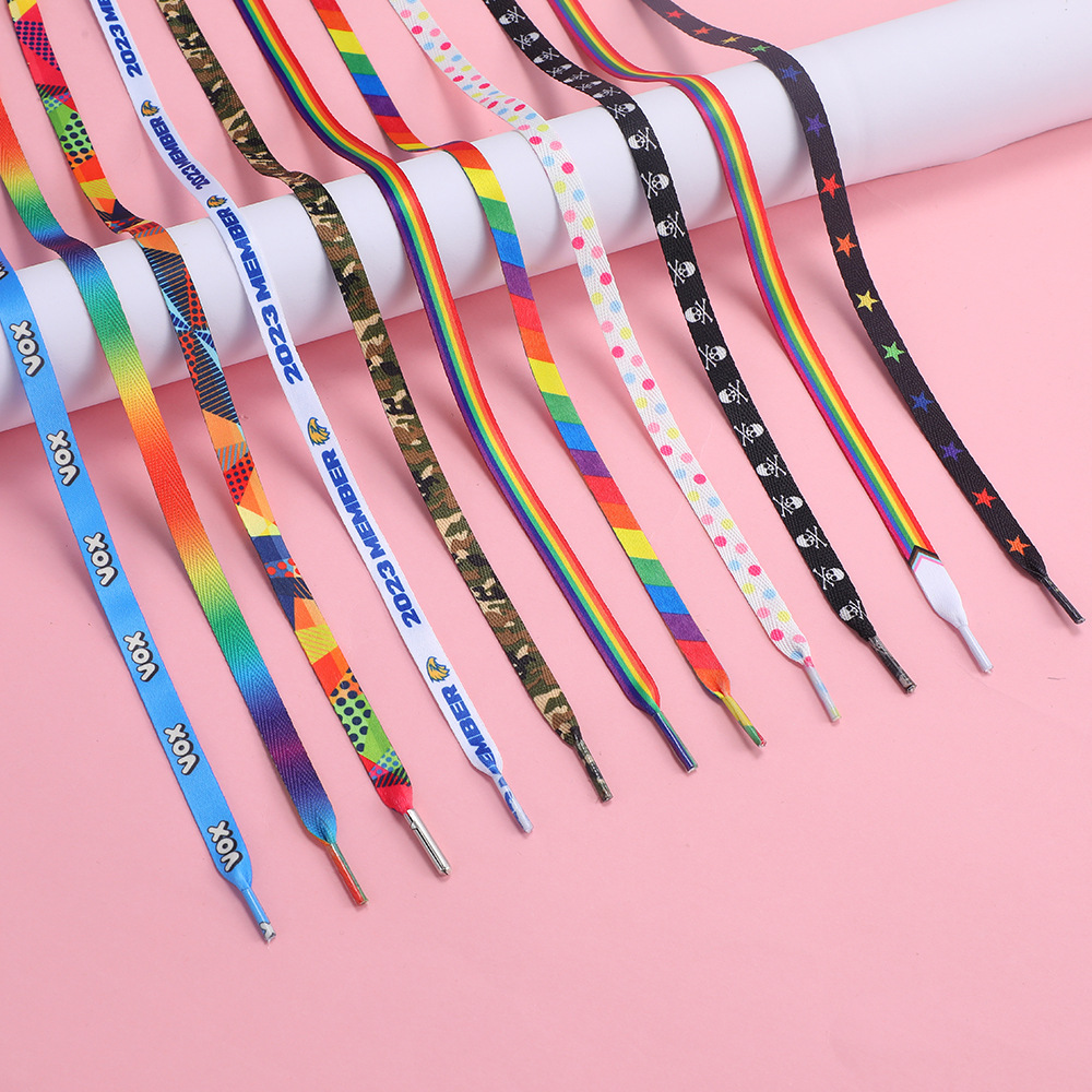 プリントカラー靴紐通用カジュアルグラデーションカラーレインボーフラットベルト男女スポーツレジャーキャンバス靴紐卸売り