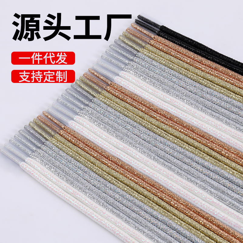 卸売り円形彩金靴帯黒銀バラ金珠光白男女金白靴靴靴ひも1足