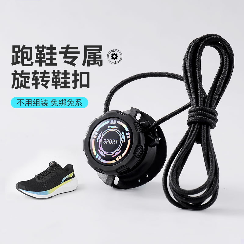 卸売回転式ボタン式楽々シューレース、結ばない、紐なし、スポーツランニングシューズ用、黒白、太い靴紐、回転式靴紐ボタン