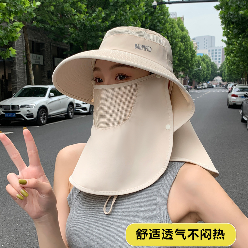 多機能日焼け止め帽子女性夏の屋外防護通気性マスク肩掛け帽子中性型紫外線防止帽子