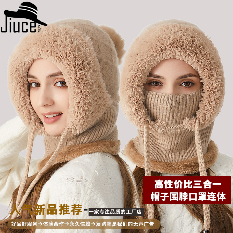 国境を越えたバラクラクの帽子女性冬の保温耳保護帽子が首を囲んで一体になったニット雷鋒帽子が韓国版を厚くした