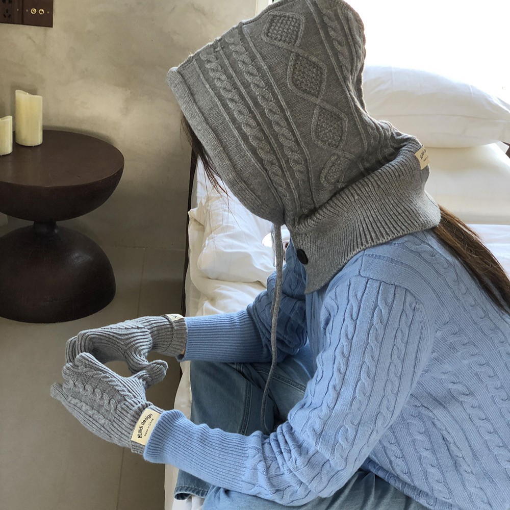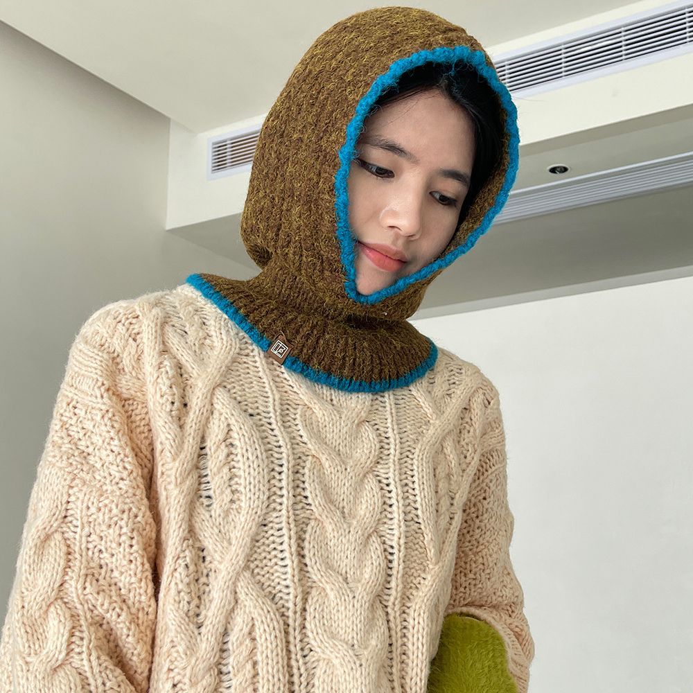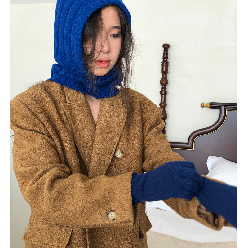 2023韓国博主モデル純色ニットフード付きマフラー帽子保温防風冬保温ウール帽子女性