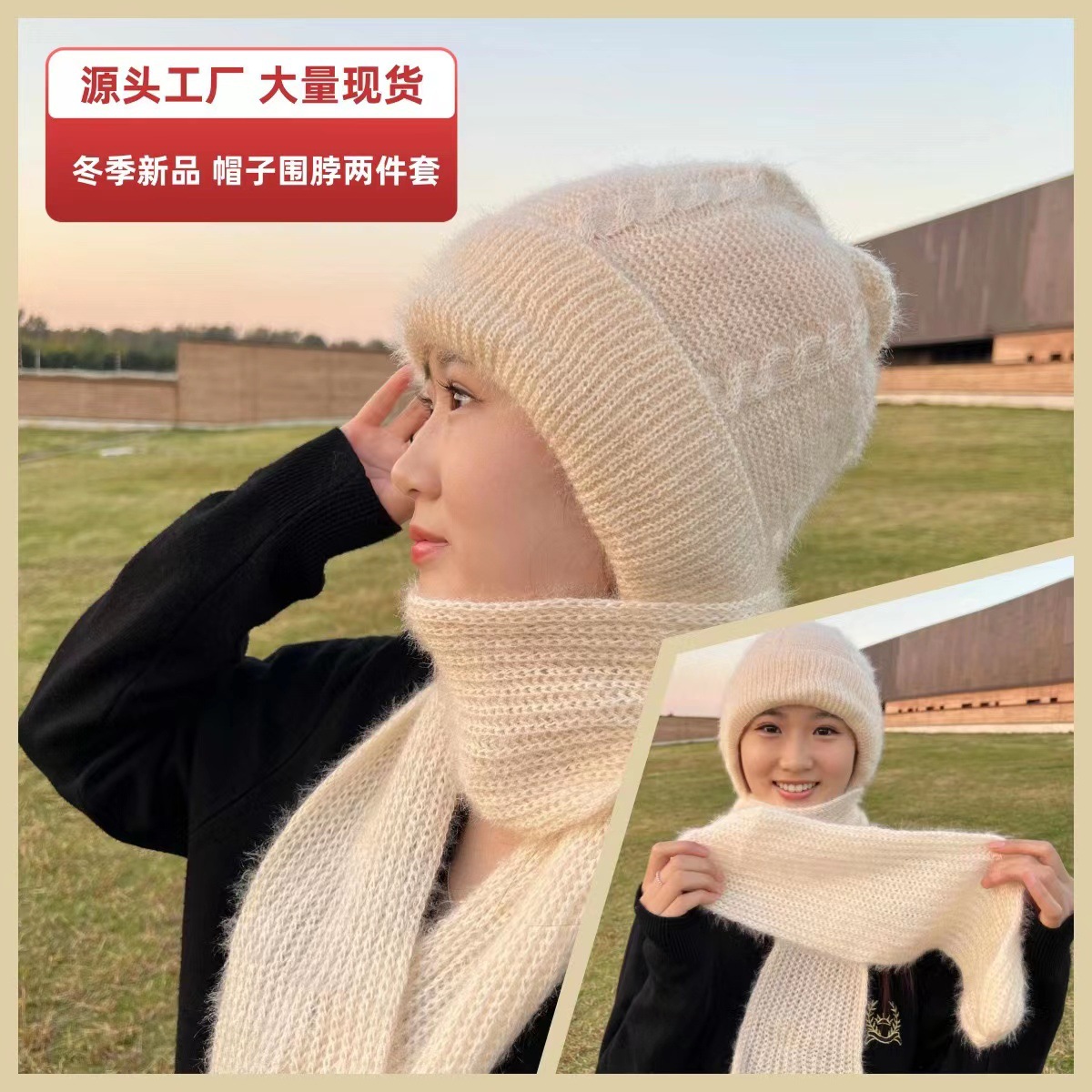 2023秋冬保温耳保護帽マフラー帽子2点セット頭防風首カバー帽子ストール連体帽子ins