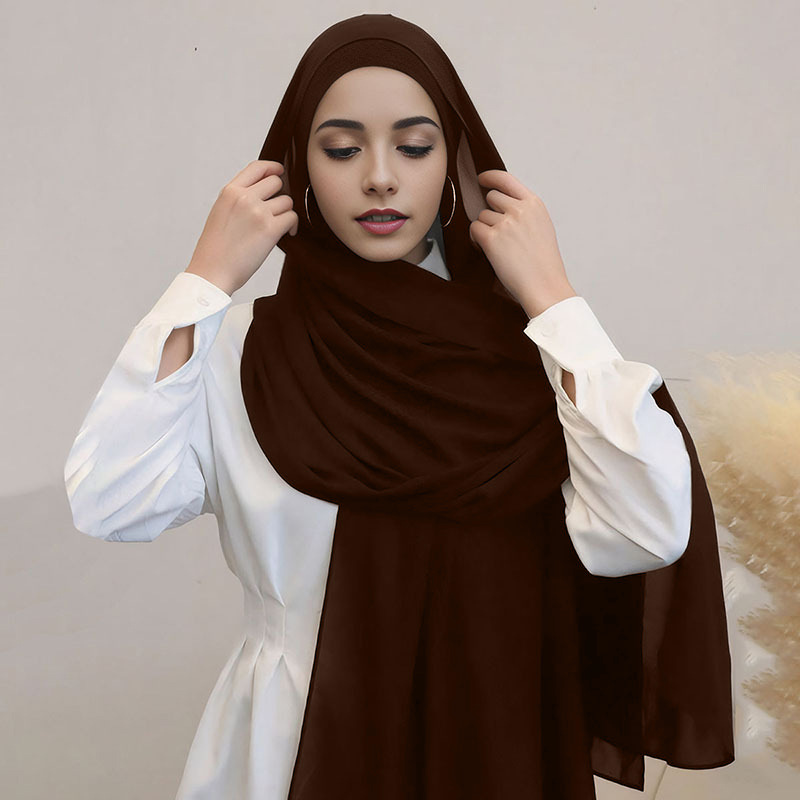 新商品のシフォンのスカーフのしわのひもの帽子のセットの単色の真珠のシフォンのスカーフのしわの底の帽子の組み合わせ