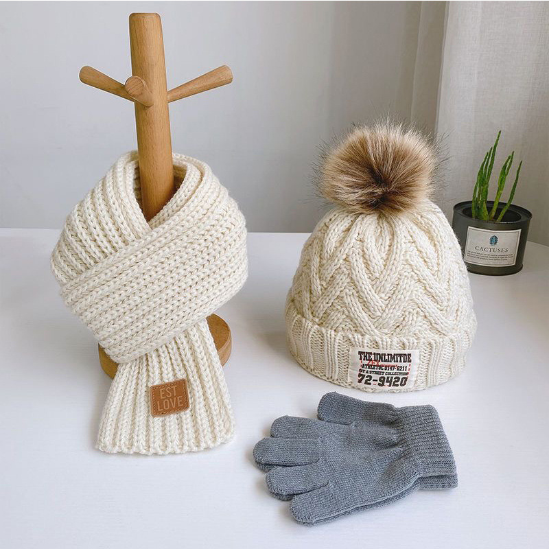 国境を越えた新しいヨーロッパとアメリカの子供用帽子、スカーフ、手袋の3点セット、多用途のスリーインワン暖かい親子マッチング