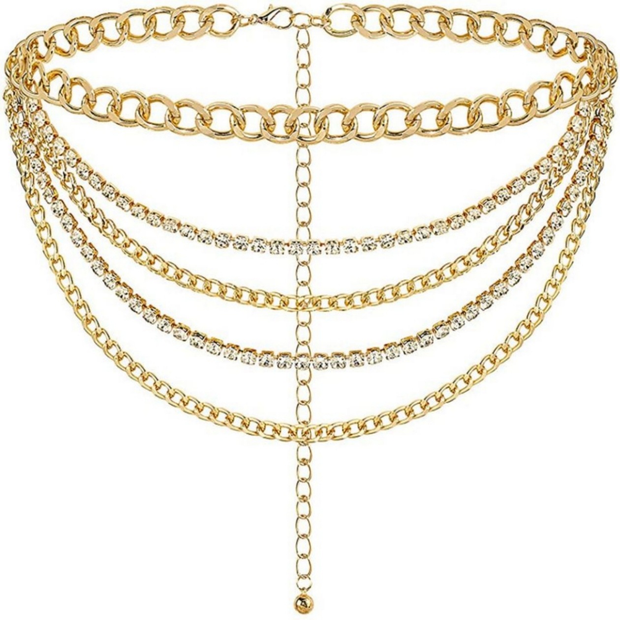 クリスタルウエストチェーンアクセサリー、女性用メタルチェーンフリンジベルト、スカート装飾、多用途ベリーダンスボディチェーン、軽奢風