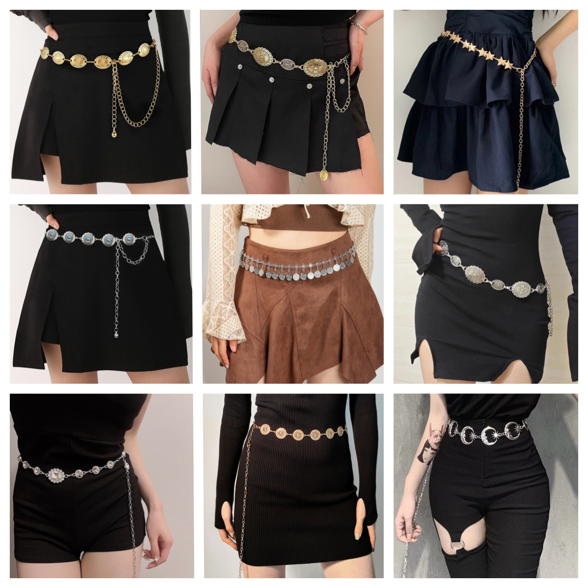 ウエストチェーン女性クールインチェーンスター装飾パンクウエストチェーンパンツチェーンアクセサリー jk スカートヒップホップジュエリーパンツチェーン