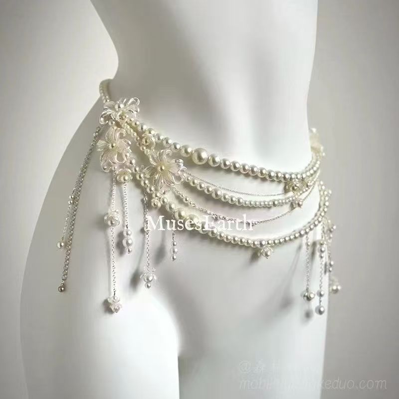 甘いクールな多層真珠のフリンジボディチェーンの女性のセクシーな個性