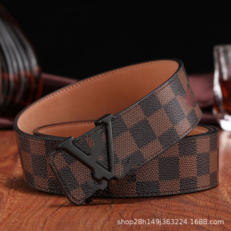 新型Lメンズベルトの滑らかなボタンのv字の母のベルトの青年の格子の紋様のズボンのベルトの潮流のカジュアルなビジネスのベルト