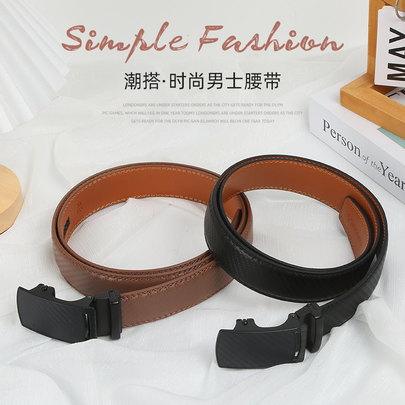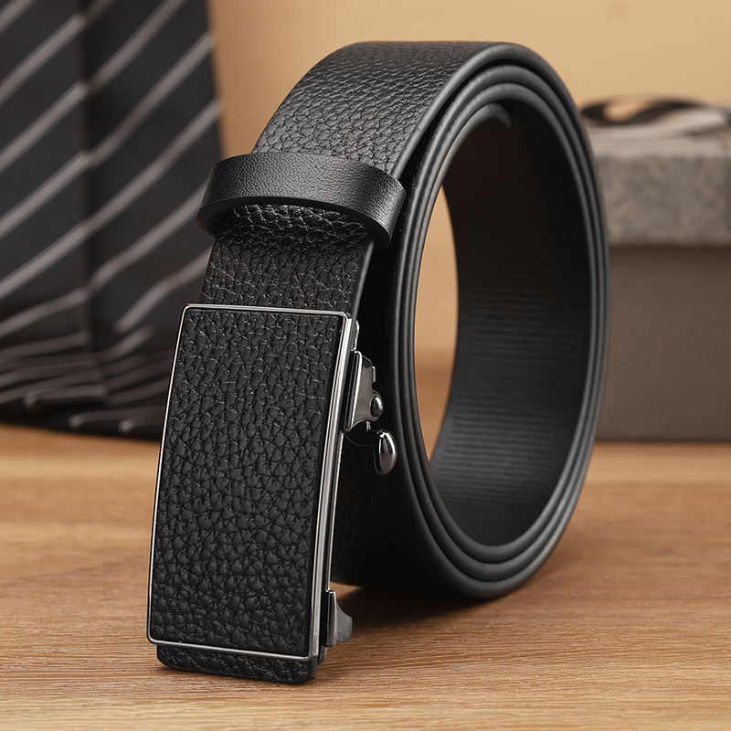 トップ層牛革ベルト男性真皮無歯自動バックル男性ベルト真皮個性潮流中年青年ズボンベルト