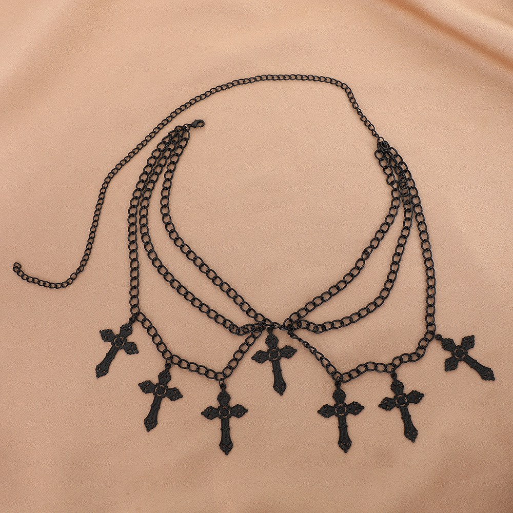 欧米のクロスボーダー合金の透かし彫りのクロスは波の側にぶら下がって鎖の腰の鎖を並べてセクシーな多層の体の鎖を飾ります。