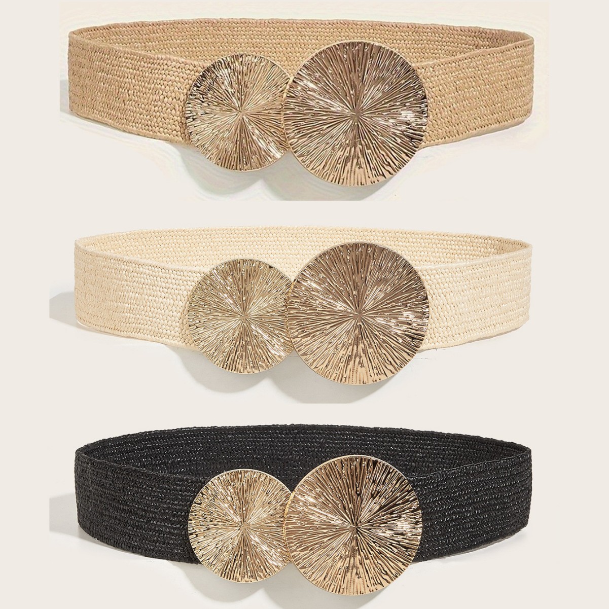 新しい PP 草織り弾性ベルト女性のファッションドレス装飾ボヘミアンウエストバンド
