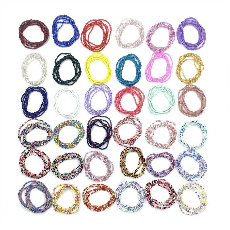 ウエストチェーンのシンプルでファッション的な手作りのビーズのボディチェーンの多彩な米の玉の弾力性の腰のチェーンの女性の欧米の越境の装飾品の腰の装飾品