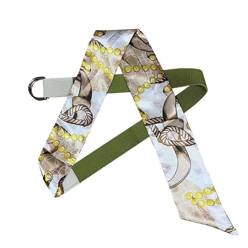 夏の新型キャンバスのシルクタオルのベルトのダブルリングの個性のベルトの女性の百合の装飾はワンピースのジーパンを配合します。
