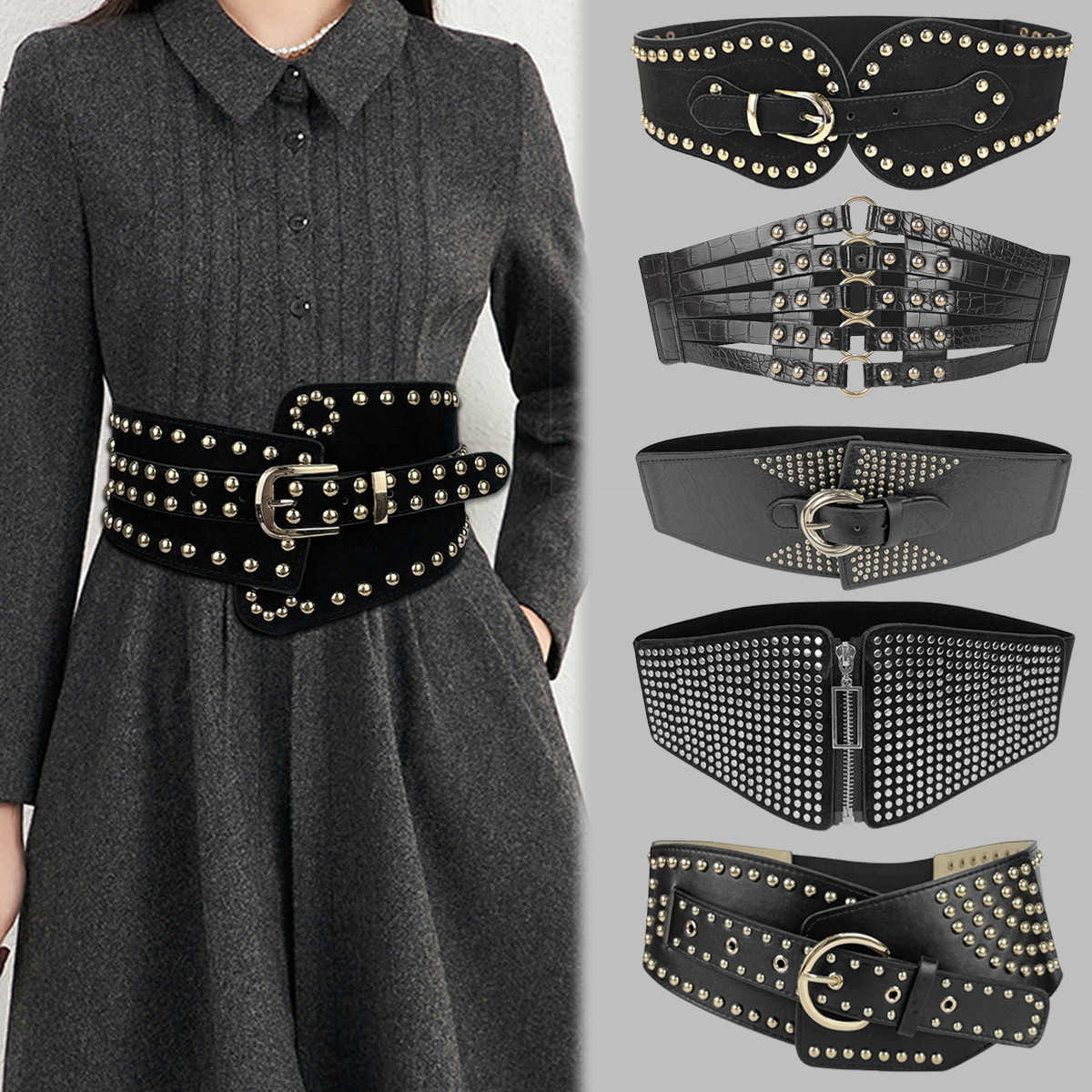 欧米のバックベルト式のウエストシールの装飾は黒いinsパンク風のストラップとスーツのベルトの女性のウエスト卸売りです。