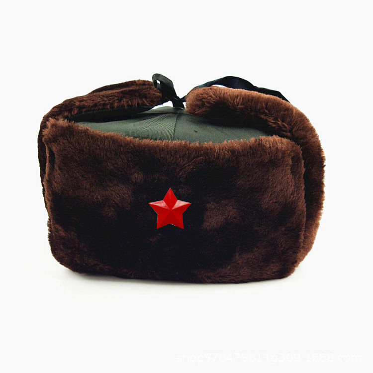 雷鋒帽男中高年綿帽機関車頭五角星帽子紅軍帽子保温帽冬帽子耳保護帽