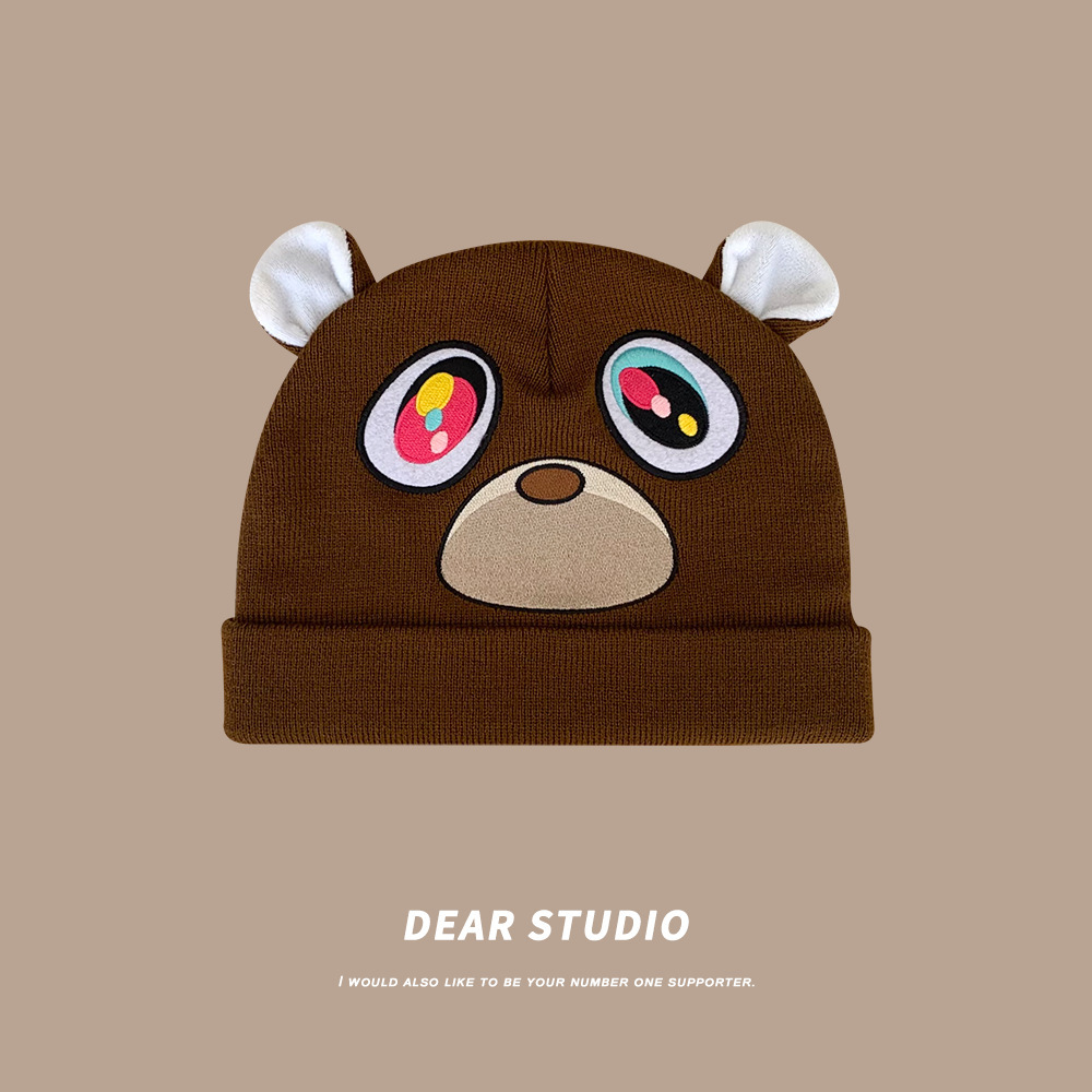 韓国版ins潮牌侃爺同金熊ニット毛糸帽子秋冬保温茶色中退熊冷帽