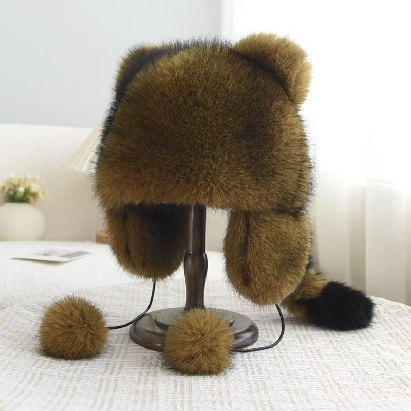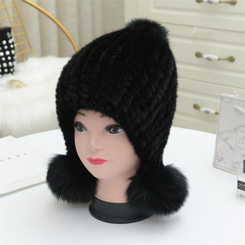秋冬保温ミンク帽ファッション耳保護ミンク毛狐毛毛玉ミンク毛編み帽子毛皮帽子