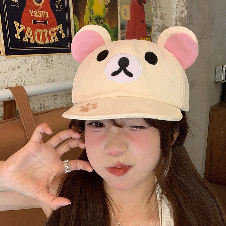 夏かわいいクマ刺繍つば付きキャップ女子学生旅行多用途顔見せ小帽子野球帽