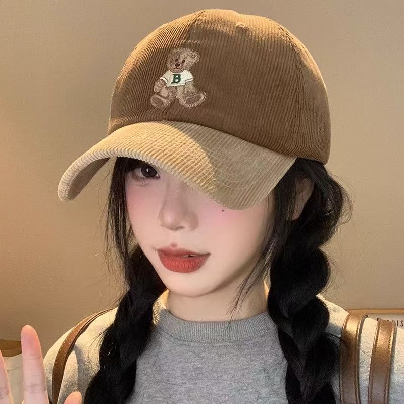 コントラストカラーの女性用野球帽、韓国風イン、大きな頭囲、コーデュロイひさしキャップ、かわいいクマの帽子、小顔の男の子向けのトレンディな帽子