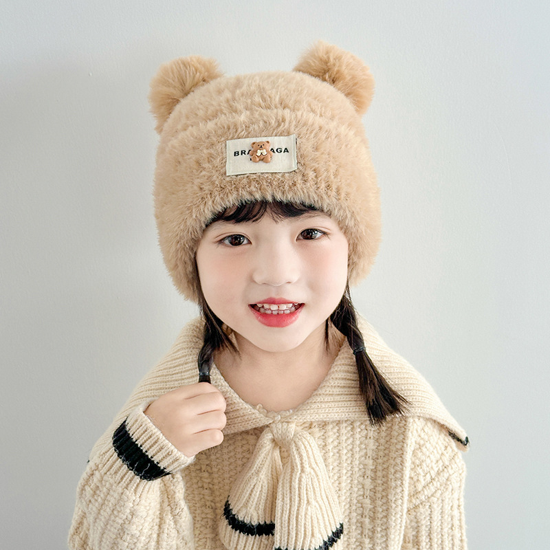 2023秋冬かわいい熊帽の子供たちは日本で保温毛糸帽の耳保護ニット帽を手に入れた