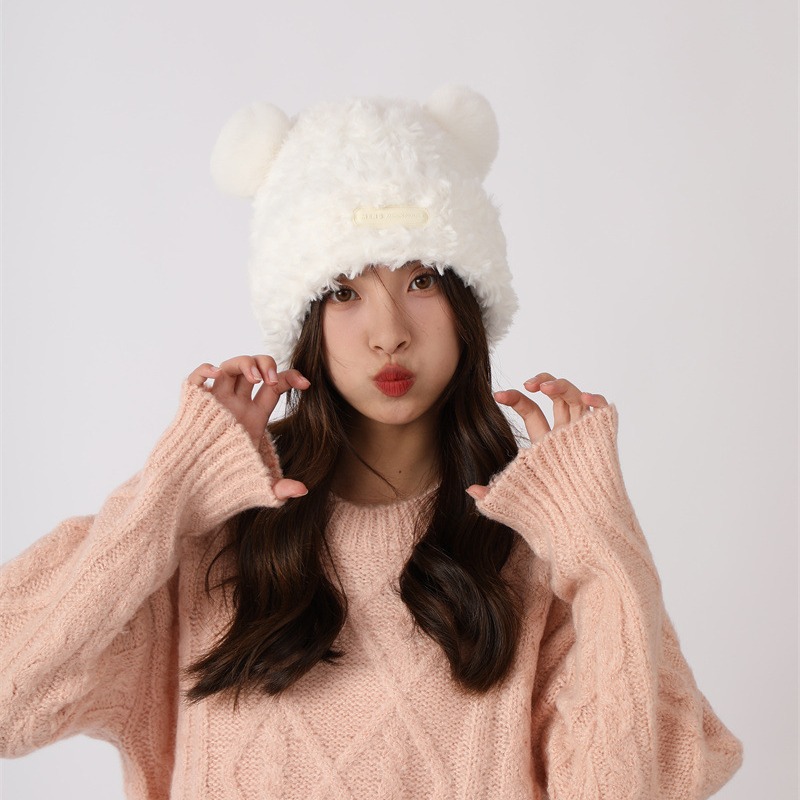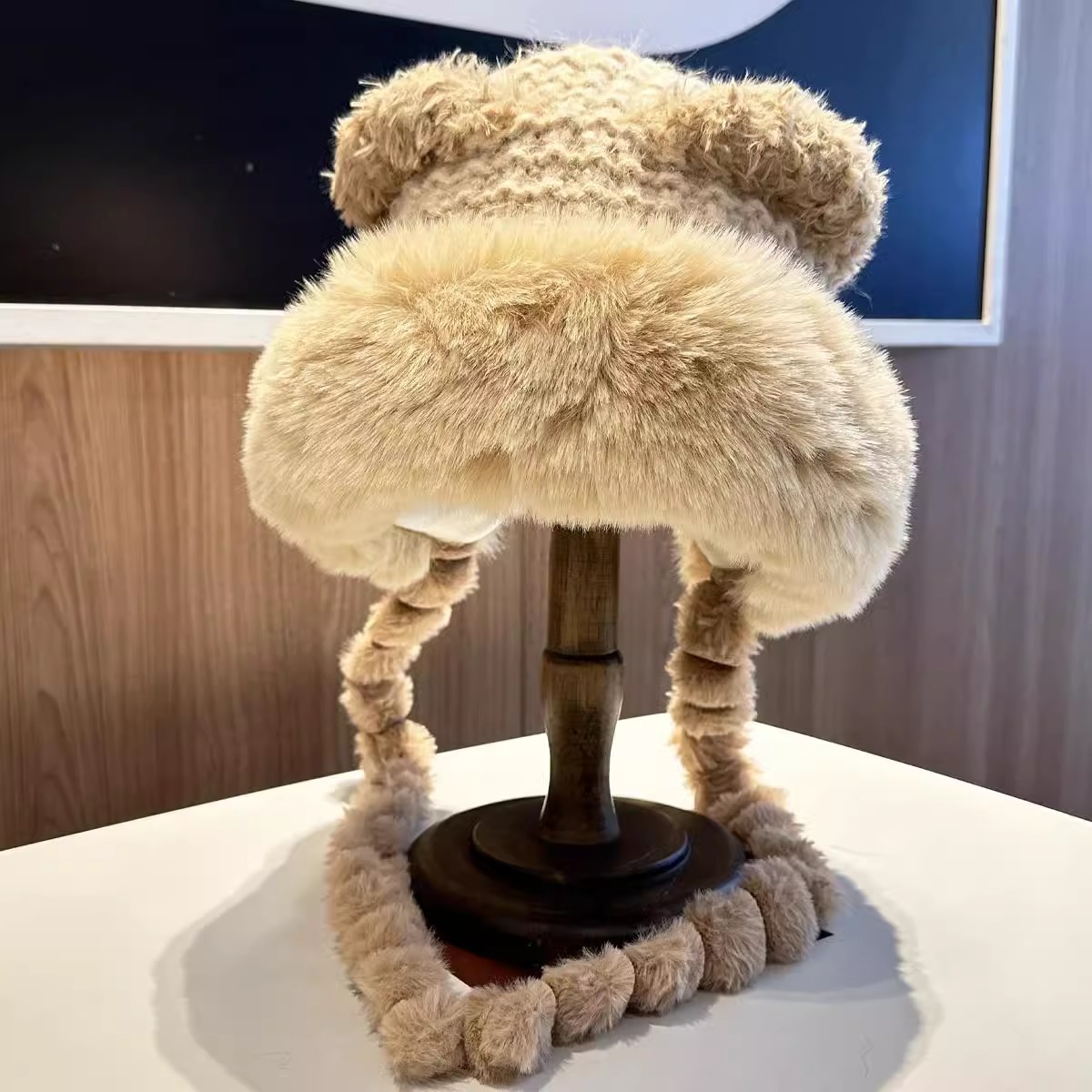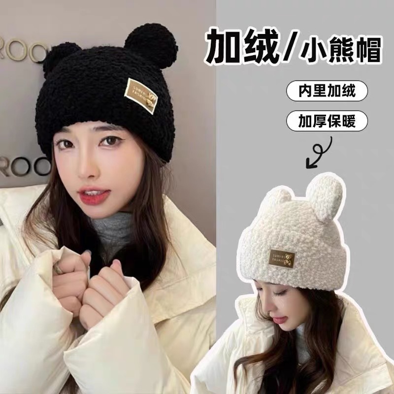 帽子女性冬防風防寒耳保護ニット帽2025新型秋冬かわいいベアー毛むくじゃら毛むくじゃら帽子