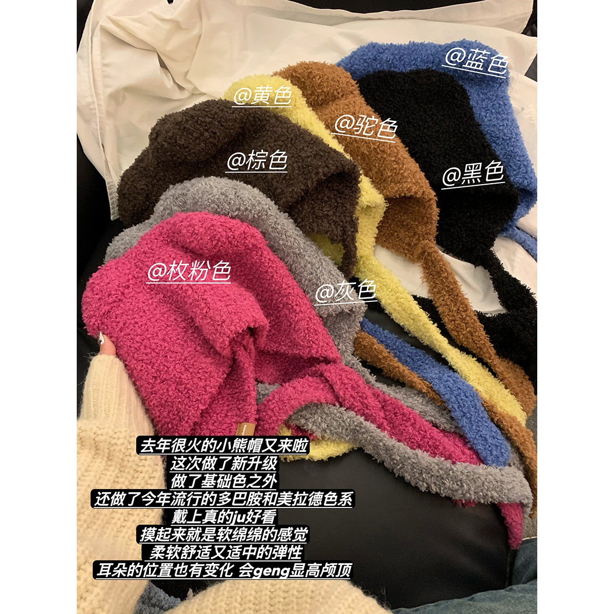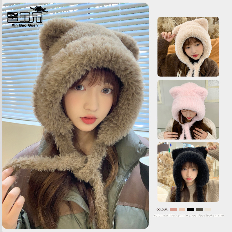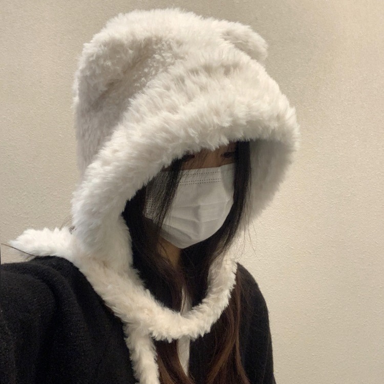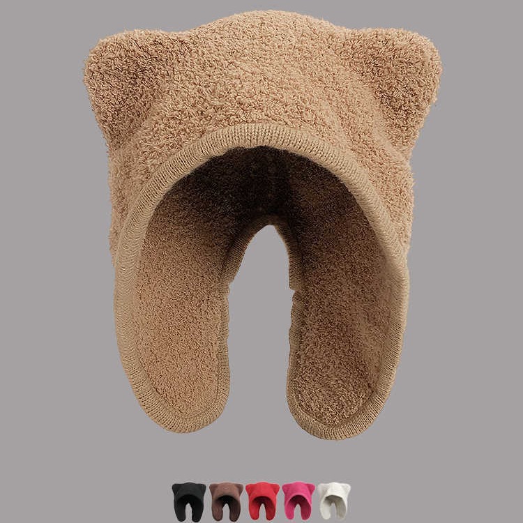 冬の新型帽子韓国版かわいい厚手毛茸熊耳耳保護帽子猫耳保温ストラップ保温帽子