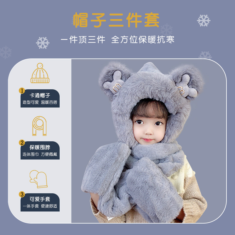 熊の帽子のマフラーの手袋の一体の3つのセットの女性の冬のベルベットは新しい保温の毛の帽子を厚くして帽子をかぶって首を囲みます。