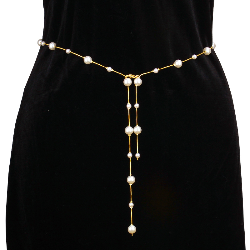 クロスボーダーパールウエストチェーン レディース 高級感 スカート用ベルト ウエストチェーン 装飾 ウエスト飾り セーター用飾り 多用途