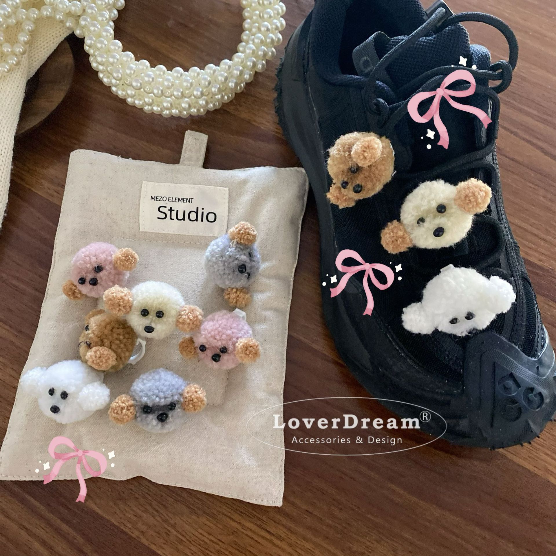 韓国の大衆が真珠レースの蝶結びをデザインして、蝶結びの真珠の靴のボタンを掛けて、靴の花を飾ります。