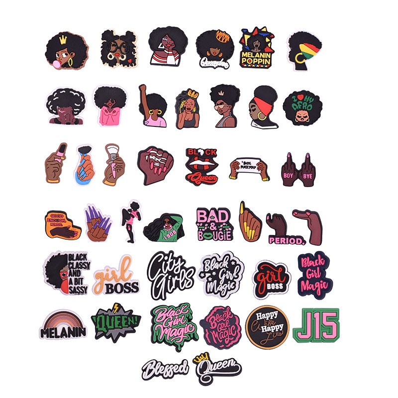 黒人の女の子の電気商アマゾン速売通pvc軟膏洞靴の花の靴のボタンの靴の装飾品