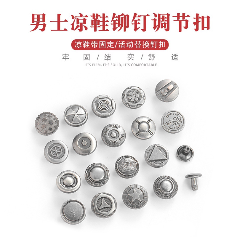 サンダルのボタンの部品の金属ボタンの夏の男性のビーチの靴の革のスリッパのかかとのベルトの接続のボタンのリベットのボタン