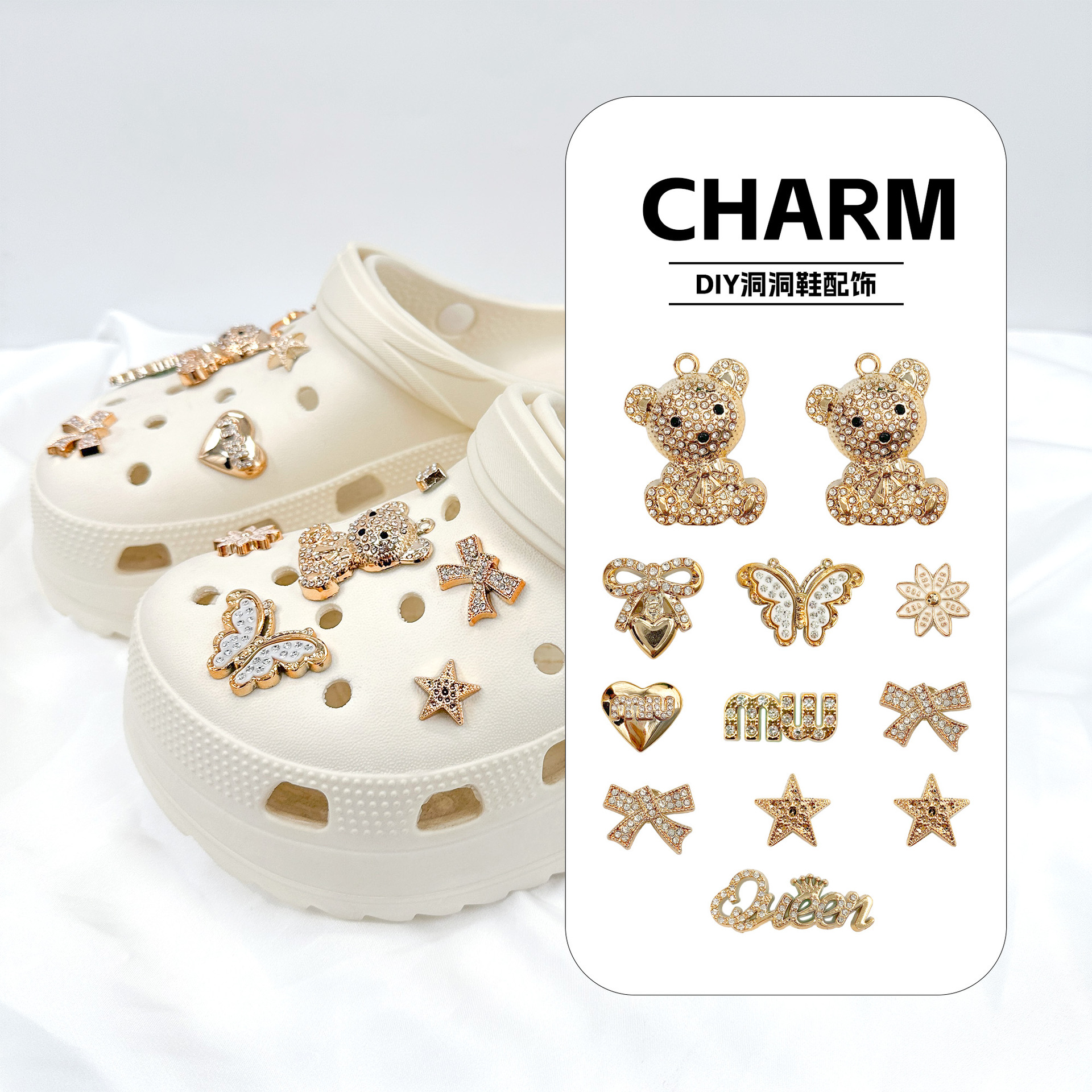 洞靴DIYアクセサリードリル真珠靴花取り外し可能な工字靴バックル花園靴装飾品靴面部品