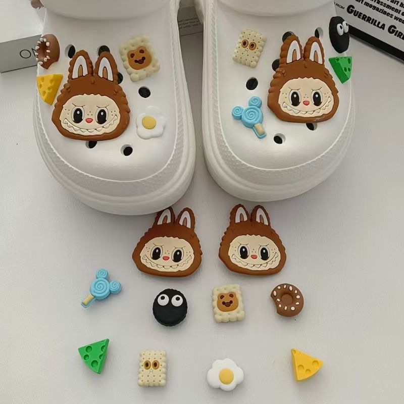 クリエイティブ漫画labubu布洞靴花靴ボタン装飾取り外し可能diy部品アクセサリー